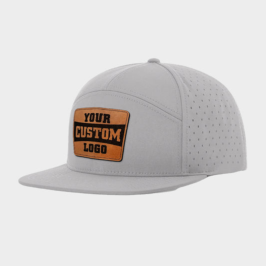 A modern seven-panel trucker hat built for performance and personalized with your engraved leather patch....