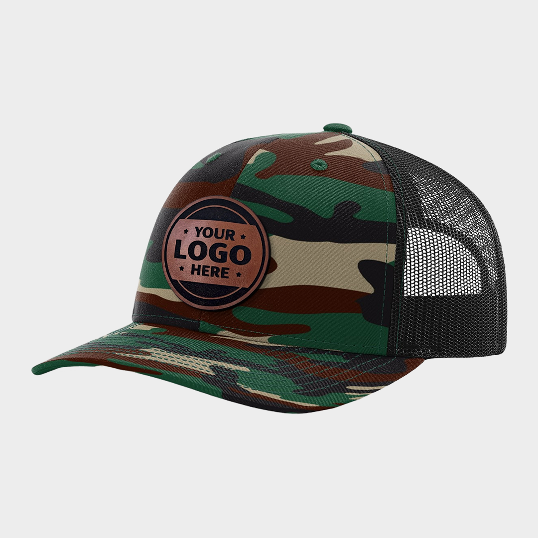 Custom Leather Patch Camo Trucker Hat – Multiple Camo Styles