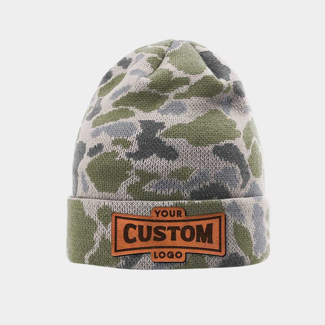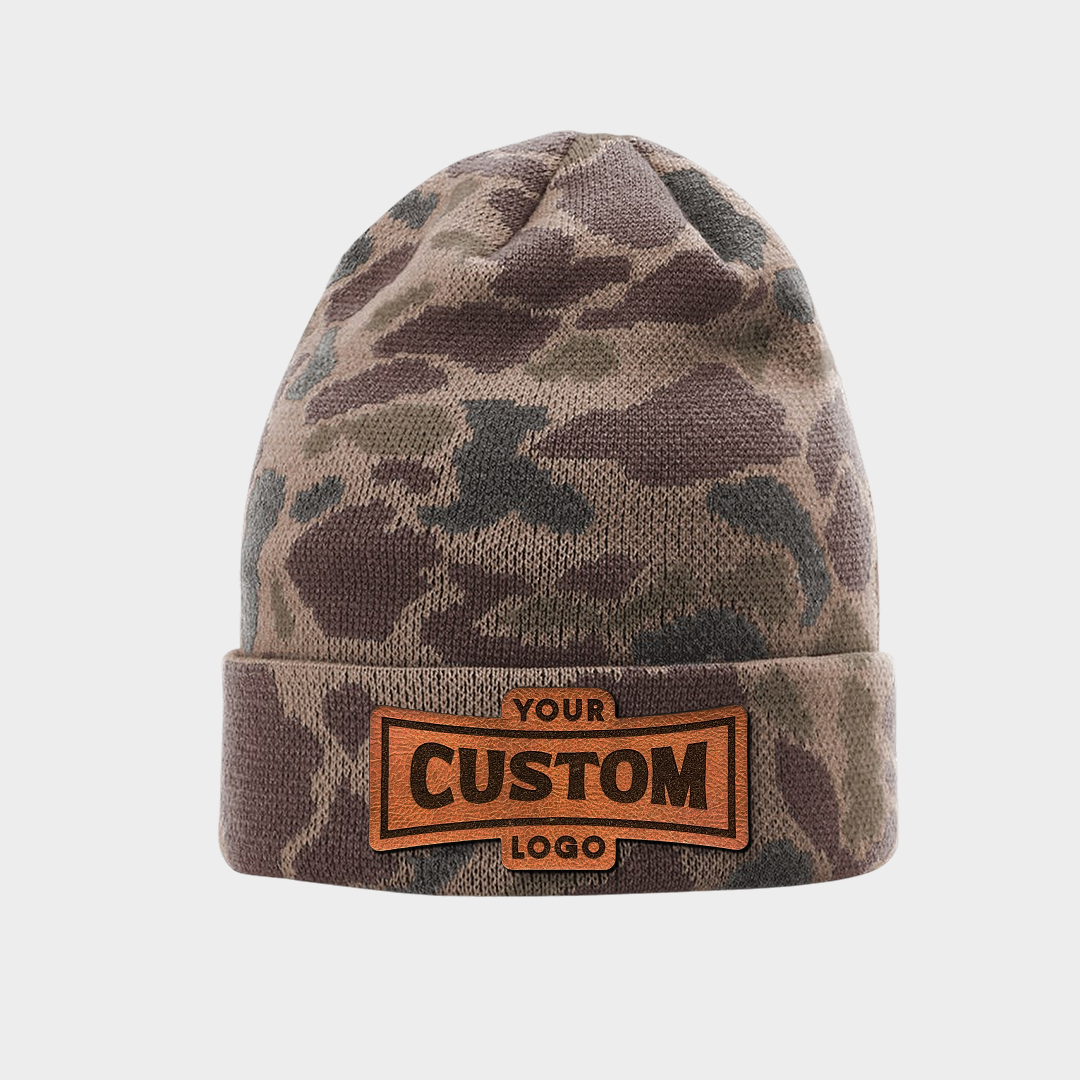Custom Leather Patch Duck Camo Beanies - Richardson 126