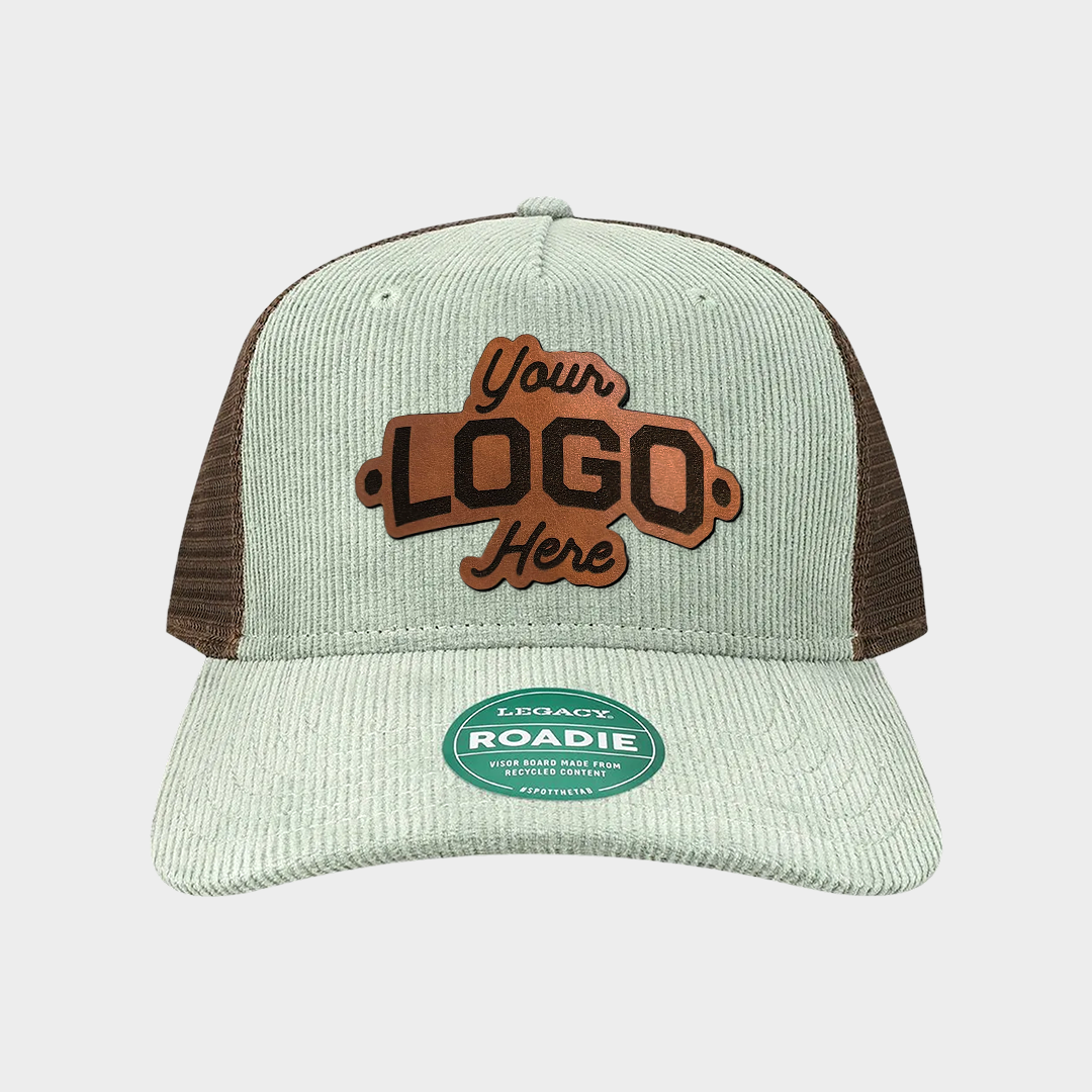 The Legacy Roadie is a versatile, structured five-panel cap that masterfully blends high-end textures with a modern mid-profile fit. Available in a wide array of premium materials—from classic corduroy and slub to technical polyester blends—this hat is designed to make a statement. Featuring a slightly curved visor and a sustainable recycled visor board, the Roadie is the perfect choice for brands looking for a unique, high-quality aesthetic that stands out from standard headwear.