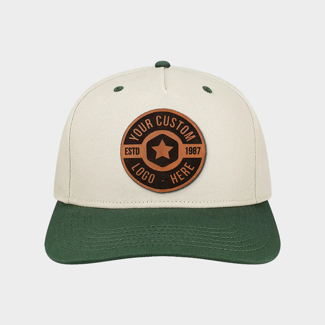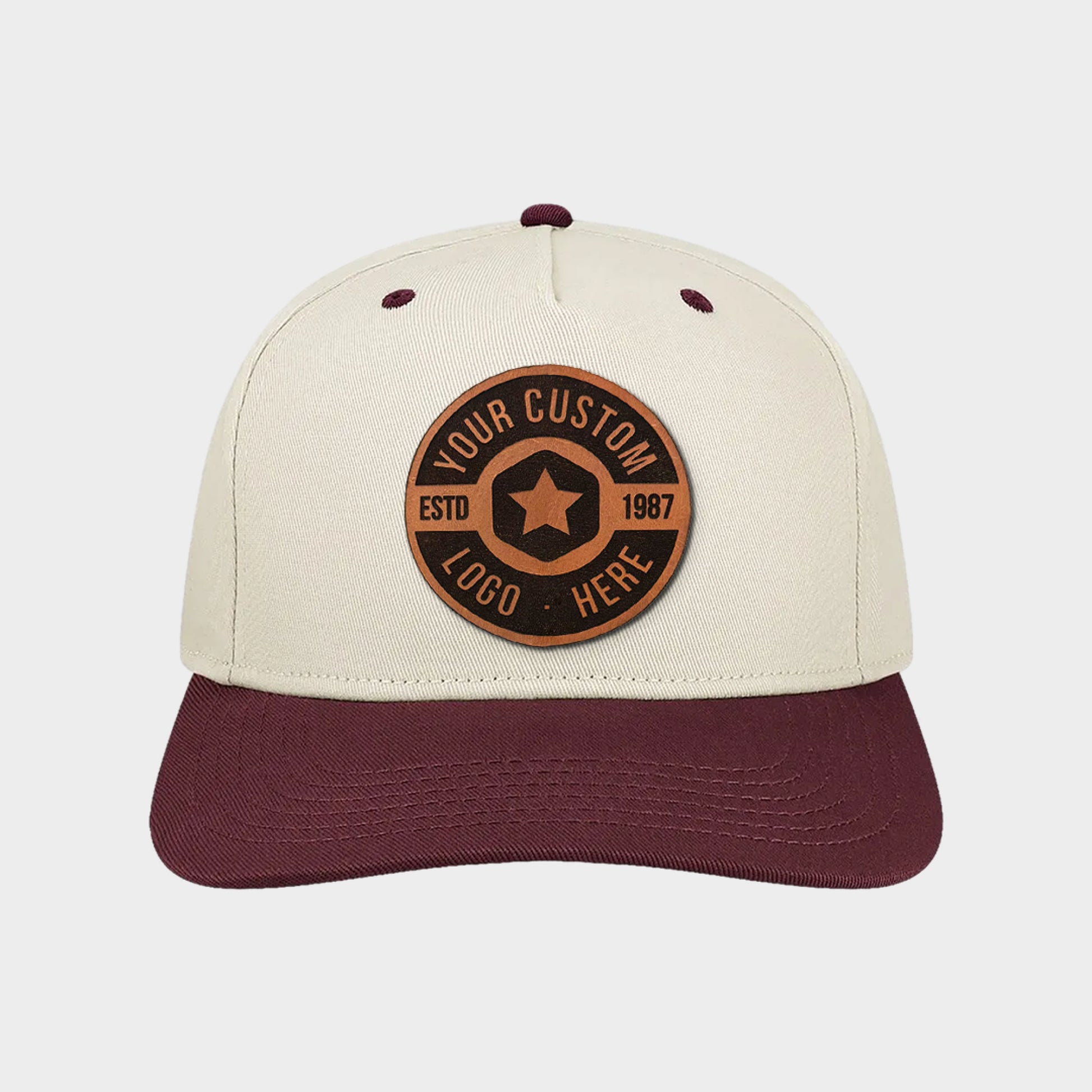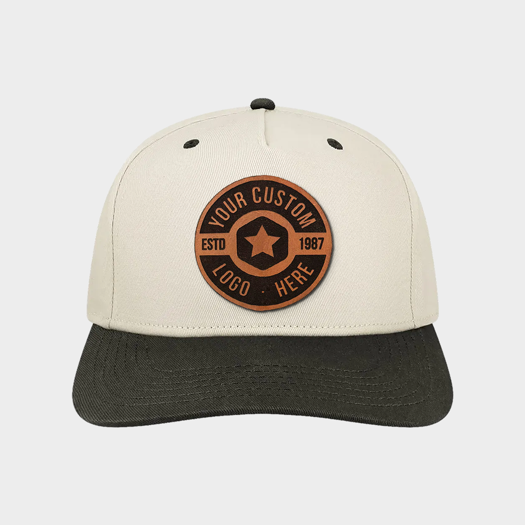 Your personalized leather patch hat—customized with your logo, image, or text and engraved on premium leather. A standout piece for branding, events, or everyday wear.