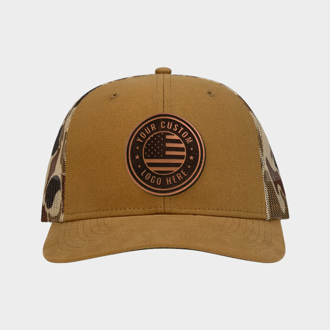 Your personalized leather patch hat—customized with your logo, image, or text and engraved on premium leather. A standout piece for branding, events, or everyday wear.
