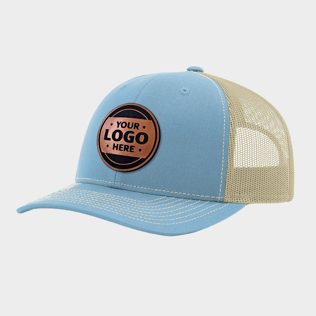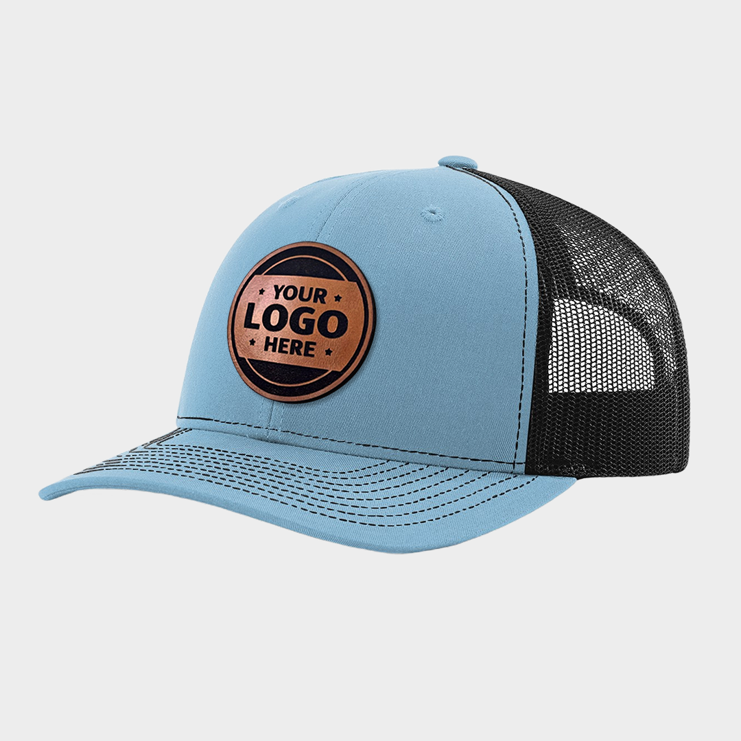 Create a custom branded look with our best-selling leather patch trucker hat, personalized with your logo, artwork, or custom text. This stylish and durable cap is perfect for teams, events, staff uniforms, or lifestyle branding.